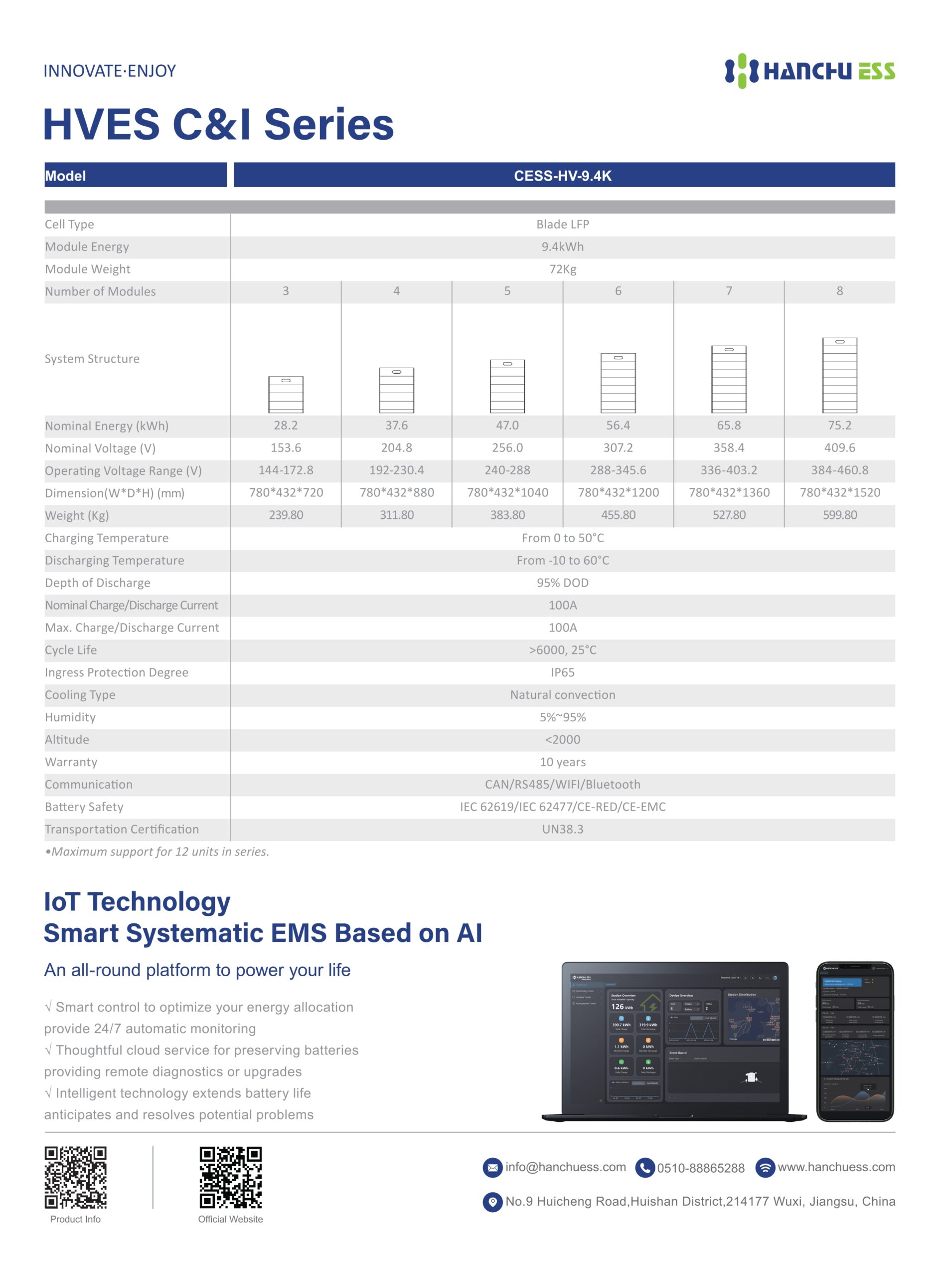 Die HANCHU HOME-ESS-HV-2.7K ist eine leistungsstarke Hochspannungsbatterie für moderne PV-Speichersysteme und eignet sich ideal für Haushalte, die ihren Eigenverbrauch maximieren, Stromkosten senken und sich unabhängiger vom Netz machen möchten. Mit einer skalierbaren Speicherkapazität von 8,1 bis 32,4 kWh bietet das System maximale Flexibilität – perfekt für Einfamilienhäuser, Mehrpersonen-Haushalte und anspruchsvolle Energieanwendungen.