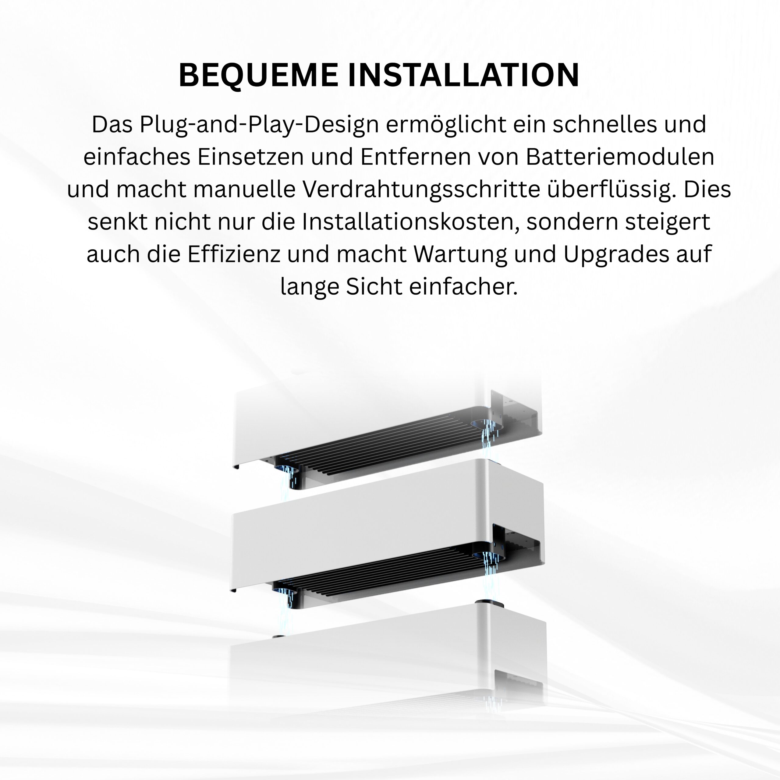 Dank des Hochspannungsdesigns liefert die HOME-ESS-HV-2.7K eine hohe Ausgangsleistung, um auch größere Verbraucher zuverlässig zu versorgen. Das macht sie zur idealen Wahl für alle, die ein zukunftssicheres Energiespeichersystem für den Alltag suchen – inklusive hoher Lastspitzen im Haushalt.
